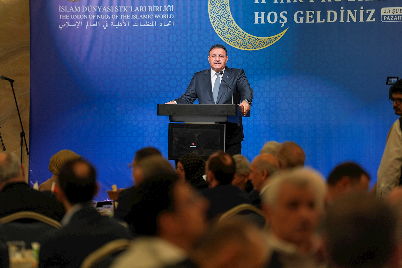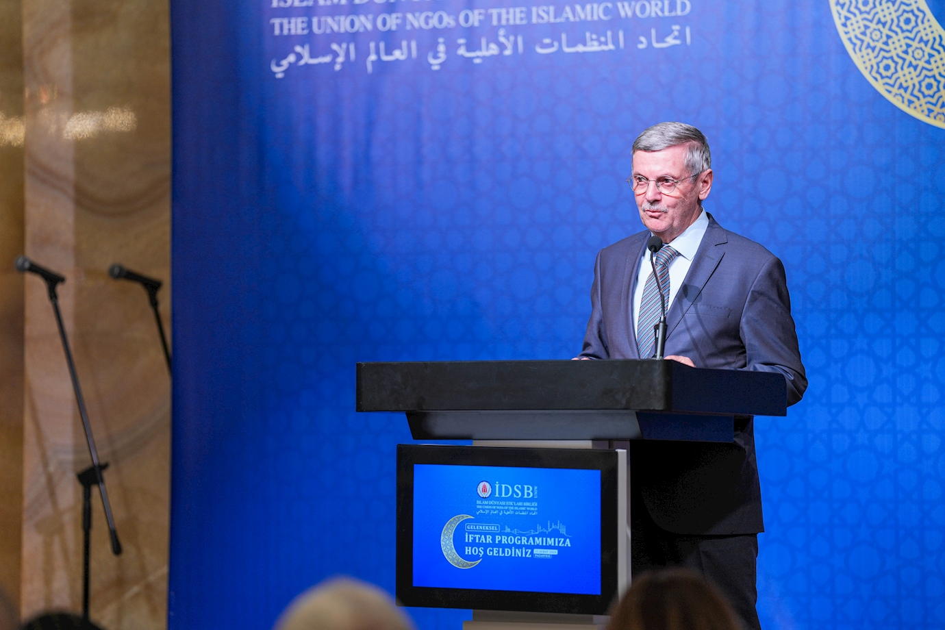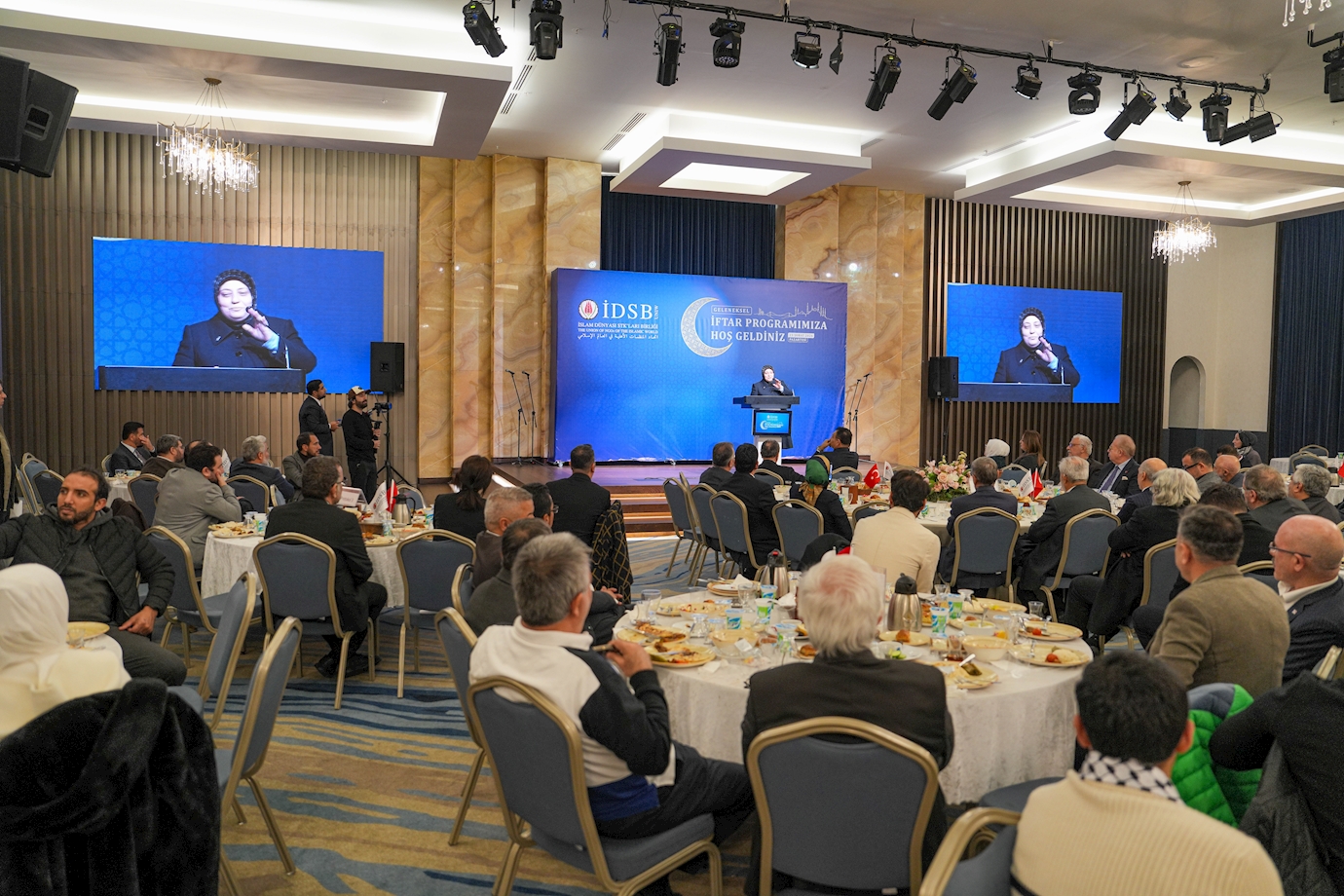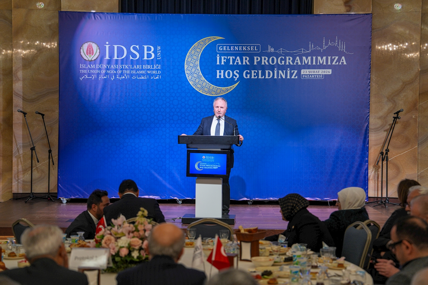 İDSB Geleneksel İftar Programı, bu yıl “6 Kıta, 66 Ülke, Tek Ümmet” ilkesi doğrultusunda; bakan yardımcıları, milletvekilleri, belediye başkanları, akademisyenler, kamu kurum temsilcileri, üyelerimiz ve çok sayıda sivil toplum kuruluşu temsilcisinin katılımıyla İstanbul’da gerçekleştirildi. Kur’an-ı Kerim tilavetiyle başlayan program, selamlama konuşmalarıyla devam etti. Selamlama konuşmasını gerçekleştiren İDSB Genel Sekreteri Eyüp Akbal, Ramazan ayının birlik ve kardeşlik ruhuna vurgu yaparak, dünyanın farklı coğrafyalarında yaşanan insani krizlere dikkat çekti. Akbal konuşmasında; Gazze başta olmak üzere Suriye, Yemen, Sudan, Doğu Türkistan ve Arakan’da yaşanan zulüm, savaş ve insan hakları ihlallerinin tüm insanlığın ortak vicdanını yaraladığını ifade ederek, “Bu ve benzeri coğrafyalarda yaşanan acıların son bulması, adaletin ve barışın hâkim olması en büyük duamızdır” dedi.